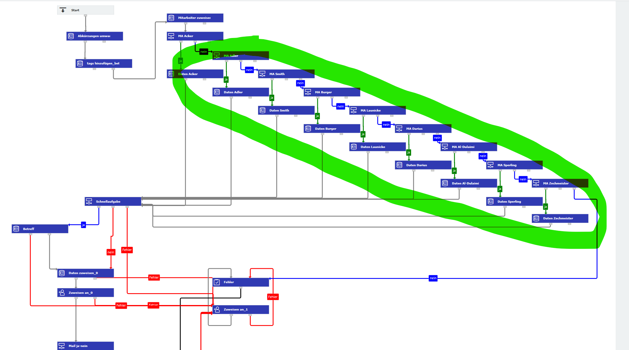 Funktionsweise: In einer einzigen "Datenzuweisung" werden nach der Reihe alle Bedingungen abgefragt. Je nach dem was zutrifft, wird das entsprechende Feld des jeweiligen Mitarbeiters ausgefüllt. Das klappt einwandfrei.