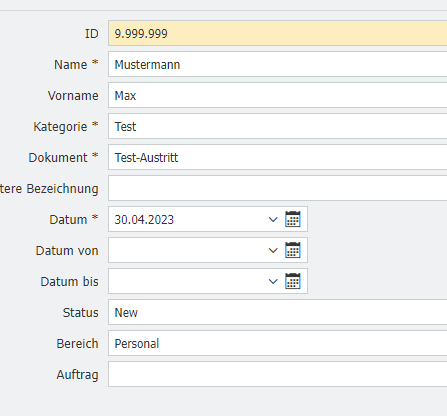 Im Idealfall füllen wir ein Formular aus z.B. mit den Werten Name = Test, ID = 123, Status = gut, danach sollen alle Dokumente<br>