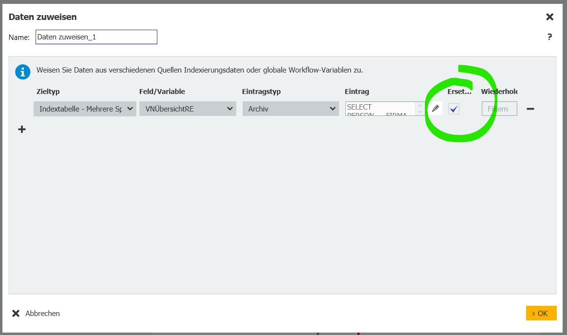 - wenn ein bestimmter Begriff darin vorkommt, wird er im Workflow mittels des "Archiv-Zugriffs" in das Dokumenten-Archiv kopiert
