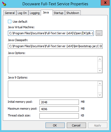 I've googled this error, and it seems to have something to do with java and tomcat. One of them asked to make sure the correct java paths are set in the tomcat service. It asked to open tomcat9w.exe in the full-text installation directory (C:\Program Files\DocuWare\Full-Text Server (x64)\bin). But when I clicked on it. it said: See attachement: dw2.png