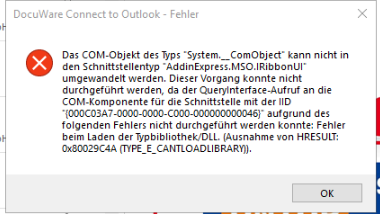 wir bekommen bei dem Versuch Dokumente über das Outlook Add-In den folgenden Fehler.