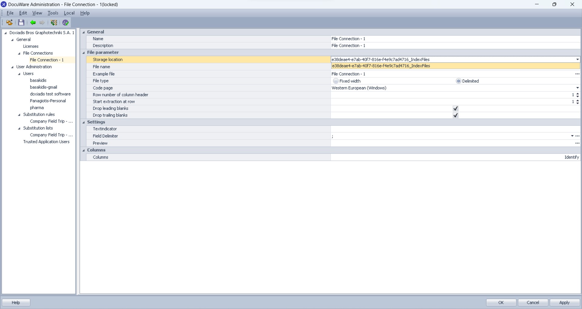 I have setup a Docuware cloud system for testing purposes for our company. I have created a text file that contains "Document Type" and "SubType" fileds that I need to import to the system and connect to each other so when selecting a specific Document Type only some of the SubType fields will be available for the user. In order to do so I have to be able to configure single and multi column select lists that are configured through database connections. Now my issue is that although my user has full access rights in Docuware, when I open Docuware Administration I am not allowed to add any new storage locations and I can not configure the already existing one. The purpose is to import a .txt file in order to use two columns that will be matched with 2 Docuware index fields. Could someone help with this issue. Thank you.