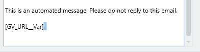 You can also assign the URL to a variable and simply put the variable in the email message: