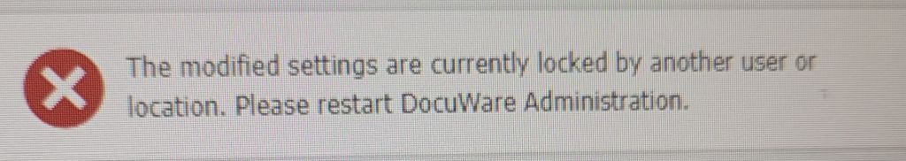 "The modified settings are currently locked by another user or location. Please restart DocuWare Administration."