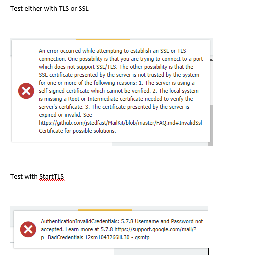 I am setting up Docuware cloud SMTP server. I have used multiple SMTP severs namely: hmailserver (on local machine), Yahoo account, and gmail. I know the my infomartion is correct, I need some help here, Thank you .