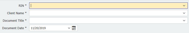 Thank you - I was able to resolve item #1.  I'm still a little stuck on item #2.  I've attached a copy of my store dialog.  I would like it if I can select the RIN from the drop down list and then it populates the name from the client name.  Example, I select 123 and it is associated with Doe, Jane - I would want that to be automatically filled in.  Same if I edit the client name field and remove Doe, Jane and put Doe, John and it would update the RIN field with 124.  Is that possible?  I thought there was a way to filter an index field based off the entry in another.
