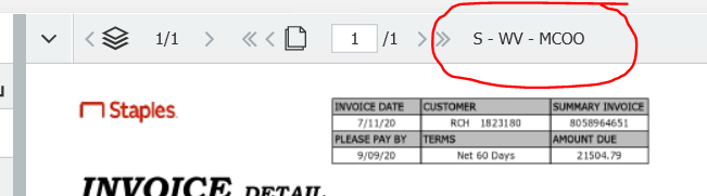DocuWare on-premise 7.3.0.55868 shows the value of the Document Name field in the File Cabinet Viewer.