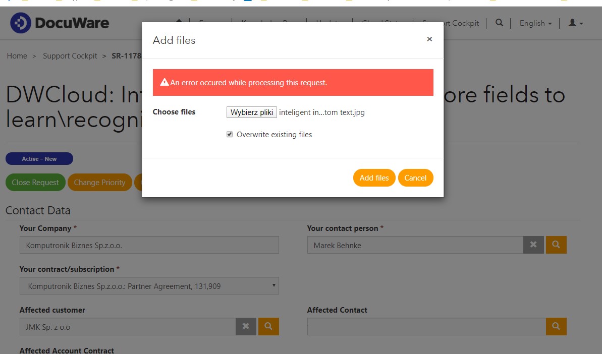 I always get an error, and the only workaround is to send attachments in reply to automated email confirmation.
