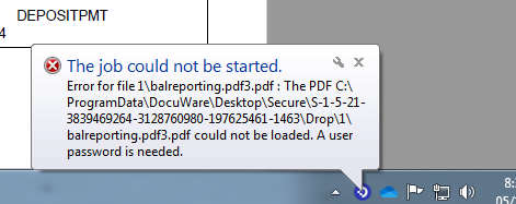 this happens, if DocuWare cannot read the document as it is password protected. So anything like read out index values, fulltext search and even viewing the file is normally not possible with password protected files. For sure, you can store these files in DocuWare, but for viewing the file you have to download it and open it in an application which can handle password protected PDF files.