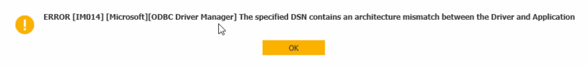 3. Create a 64 bit ODBC connection with EXACTLY the SAME name as the 32 bit ODBC connection (ODBC Data Sources 64 bit).