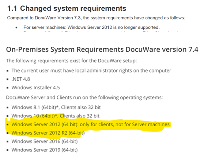 In some documentation it states that Windows Server 2012 is no longer supported in version 7.4. in other documentations it states that Server 2012 is supported for clients only, not servers, but this restriction is not listed for Server 2012 R2.