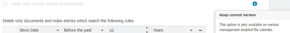 There is currently no possibility to delete older versions, as this would break the whole functionality of version management. With best regards, Ute Degen Software Support Team ORANGE EMEA