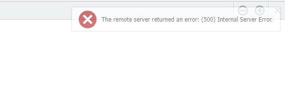 The error says: "The remote server returned an error: (500) Internal Server Error."