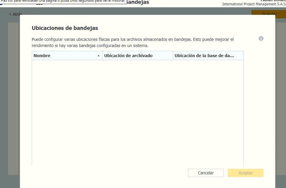 Estoy intentando crear una bandeja en mi nuevo sistema Docuware sin embargo no me está apareciendo la ubicación de almacenamiento
